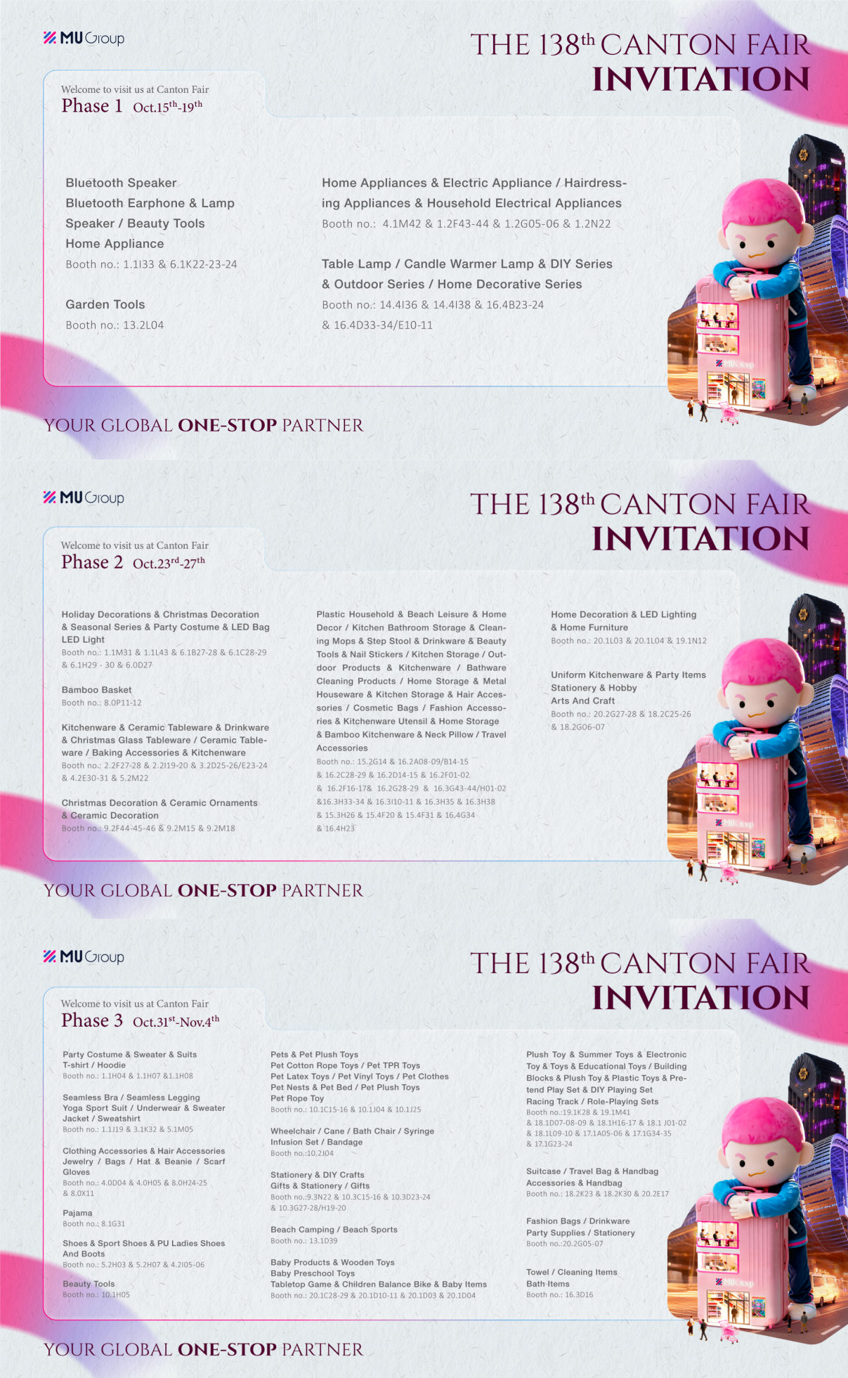 Welcome to visit our booths and showroom. Let us provide you with professional sourcing solutions: